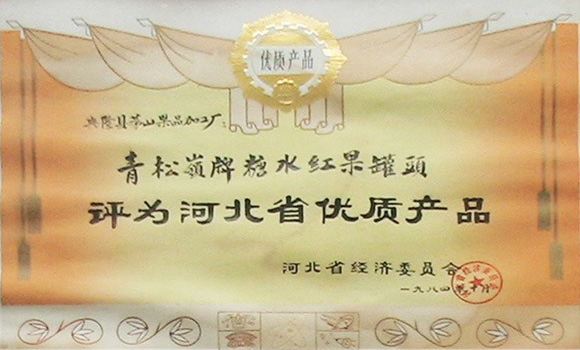 “青松嶺”牌產(chǎn)品,榮獲河北省優(yōu)質(zhì)產(chǎn)品。
